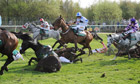 Aintree to review safety after two horses died following race in sweltering heat and over firmer ground than usual The Grand National has been compared to “Spanish bullfighting” and its organisers accused of “ritualised animal cruelty” after Saturday’s race in sweltering heat and firmer than usual ground left two horses dead and the winning animal too exhausted to be ridden into the winner’s enclosure. The annual controversy over the dangers of the meeting intensified further after a jockey riding in the Maghull Novices’ Chase – a race that did not feature the National fences – was put in a medically-induced coma after sustaining head injuries when his horse fell at the first fence earlier on Saturday. The National, run over ground officially described as “good, good-to-soft in places”, was won by Ballabriggs in nine minutes and one second, making it the second fastest ever. The speed at which the horses travelled increased the likelihood of injuries. Only 19 of the 40 horses that started the race finished it. Ten fell; five were pulled up; four unseated their riders; and two were brought down by other fallers. The two horses that died fell during the first circuit of the four-and-a-half-mile race. Ornais tumbled at the fourth fence, breaking its neck, while Dooneys Gate fell at the sixth, Becher’s Brook, breaking its back. Their falls led to both fences being bypassed in the second circuit, the first time such action has been taken in the history of the Grand National. The race also appeared to have taken a heavy toll on Ballabriggs, which was given oxygen and doused with water to cool it down. Its rider, Jason Maguire, had to dismount and enter the winner’s enclosure on foot. Three of the first four horses to finish were too exhausted to enter the winners’ enclosure and went directly to their stables. The protest group Animal Aid, which pointed out that 20 horses have died on the Grand National course since 2000, called for the event to be banned, saying it “should have no future in a civilised country”. Its director, Andrew Tyler, said: “When horses are killed at the Grand National meeting, their deaths are not accidents but entirely predictable. The public has been conned into believing that the Grand National is a great sporting spectacle when, in reality, it is straightforward animal abuse that is on a par with Spanish bullfighting.” The League Against Cruel Sports described the race as “ritualised animal cruelty” and accused its sponsor, brewers John Smith’s, of putting “their profits into sponsoring the cruelty”. Tony Moore, chairman of Fight Against Animal Cruelty in Europe (Faace), said the deaths were “not only sad … [but] inevitable”, adding: “We are going to continue campaigning and raising awareness of this tragedy and perhaps we can make it change, make people think about what they are putting the horses through.” The BBC also came in for criticism for its coverage of the animals’ deaths after its commentator, Mick Fitzgerald, referred to the dead horses as “obstacles”. “[It] deserves special condemnation for all but concealing news of the deaths,” said Tyler. “In fact, one of its commentary team described the dead horses as they lay on the course as ‘obstacles’, which was particularly disgusting and callous.” The corporation defended its coverage, saying it had been aware of the fatalities and had tried to cover them with “as much sensitivity as possible”. A spokeswoman added: “Clare [Balding] was also most sensitive in her reporting of the incidents and even touched on it in her closing links to the programme.” The race’s organisers said they were “desperately sad” over what had happened and promised a thorough review of Saturday’s events. “When a horse gets hurt, everyone is deeply upset,” said Julian Thick, managing director of Aintree racecourse. “Safety is the first priority for the organisers of the Grand National meeting and we will redouble our efforts to make sure that everyone involved in the event – the horses, the jockeys, the spectators – is able to participate in safety and comfort.” The RSPCA confirmed that it would be taking a close look at the race footage to see if anything could have been done to prevent the deaths. “The death of a horse at any race meeting is never justifiable and it is crucial that, wherever possible, steps are taken to reduce the likelihood of such tragedies occurring,” said a spokeswoman. “The Grand National is the most testing of races and due to the number of runners, the distance of the race and the number and variety of obstacles there is a higher risk to horses.” Meanwhile, the jockey who suffered bleeding on the right side of his brain when his horse fell in the Maghull Novices’ Chase on Saturday remained in a stable condition. Peter Toole, 22, was taken to Fazakerley hospital, near Aintree, but was later transferred to the neighbouring Walton Centre for Neurology and Neurosurgery. Trainer Charlie Mann, to whom Toole is attached, said: “He’s in an induced coma and he won’t be brought out until Monday at the earliest. He has bleeding on the right-hand side of his brain. “He also dislocated a shoulder, which has been put back in place. He’s on a ventilator, and it’s not great – but we won’t know any more until Monday.”His weighing-room colleague David Crosse added: “I’ve spoken to Peter’s dad, who said he remains stable, but with no improvement. He’s going to be sedated for 24 hours.” Grand National Horse racing Grand National 2011 Animal welfare Animals BBC Sam Jones guardian.co.uk