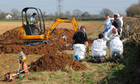 Detectives checking dental records after recovering human remains from field in Oxfordshire Detectives investigating the murder of Sian O’Callaghan are hoping to identify a second body found as part of the inquiry. They are checking dental records to find a match with remains of a young woman found in a farmer’s field in Oxfordshire. If the records do not help, officers will try to obtain a sample of DNA from the bones, a process that could take several weeks. Meanwhile, taxi driver Chris Halliwell remains behind bars on remand after appearing before Swindon magistrates charged with O’Callaghan’s murder. Halliwell faced an angry crowd inside and outside court that shouted insults and threats. Just before the hearing, the venue was switched to different courtroom so that Halliwell could be held in a dock with a roof on it, amid concern that missiles could be thrown. A packed public gallery was warned not to disrupt the hearing by the chair of the bench, Angus MacPherson. But as Halliwell was led from the dock, insults were hurled at him and one person shouted: “If we ever get hold of you we will kill you.” Outside, about 100 people had gathered. One man shouted: “Judge, give him bail. We will look after him.” Another yelled: “There is £150,000 on your head.” As the police van containing Halliwell was driven away, five or six onlookers banged on the side of the vehicle and chased it down the street. Halliwell, 47, wore a dark suit and striped shirt for his three-minute appearance. He spoke only to confirm his name, address, age and the identity of his lawyer. The clerk of the court said Halliwell was charged with murdering O’Callaghan between 18 and 25 March. He clasped his hands in front of him as the court head that a routine bail hearing will take place on Wednesday. O’Callaghan’s father, Mick O’Callaghan, later paid tribute to a “bright, bubbly, caring and friendly” daughter. Speaking in public for the first time since her body was found near a roadside in Oxfordshire, he described the family’s pain as “raw and overwhelming”. Sitting with Sian’s older brother, Liam, he said he was speaking for the whole family, including his wife Elaine and Sian’s partner, Kevin Reape. “As a family we wanted to express a few words about our beautiful daughter, a wonderful sister to Liam, Lora and Aiden and loving girlfriend to Kevin,” he said. “Sian was a bubbly, friendly, caring and loving girl. She was instantly likable, beautiful and considerate. “Although our pain at this time is raw and overwhelming, our memories of Sian will be a comfort to us in the dark days ahead.” He thanked the police, family, friends, the media and residents of Swindon for their help and support. “We would also like to thank the community in Swindon for their overwhelming kindness and support,” he said. “The sheer numbers of people involved in the searches, the vigils, flowers, lantern lighting and murals to Sian are incredibly touching and beautiful. Thank you.” O’Callaghan, a 22-year-old office administrator, disappeared in the early hours of Saturday 19 March after a night out with friends at the Suju nightclub in Swindon. Her body was found close to the Uffington White Horse in Oxfordshire, about 12 miles east of the town, on Thursday. Police are appealing again for information from people who saw anything in the Ramsbury area, near Marlborough, 12 miles south of Swindon, from 3am on Saturday – the night she went missing. The work to identify the second body found near the village of Eastleach in Gloucestershire, 15 miles north of Swindon, is continuing. The remains, believed to be those of a woman aged between 23 and 30, were discovered on Saturday and police believe she disappeared between 2003 and 2005. A police source said officers are checking dental records to try to establish her identity. If they can find a match they may know the identity today. If not the process could be a much longer one. Crime Police Steven Morris guardian.co.uk