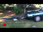 Raw Video: 10-foot Gator Chomps on Patrol Car