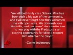 The Ottawa Senators have traded NHL player Mike Fisher to the Nashville Predators hockey team where he’ll be able to live full-time with his wife, multi-platinum country star Carrie Underwood. (Feb. 11)